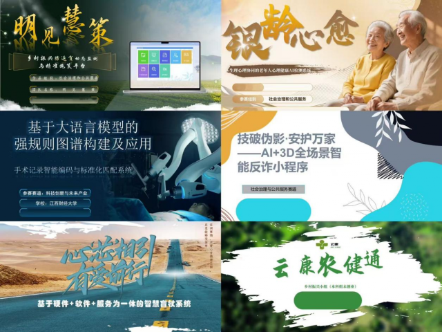 主持人宣布比赛规则后,答辩环节正式开始。由不同专业、不同年级的同学组成的14支队伍,按照赛前抽签顺序依次进行线上PPT展示,各队伍同台竞技、项目内容精彩纷呈。评委组从创新性、实践性、商业可行性、团队表现及社会价值等多个维度,对参赛项目展开严格评审与细致打分,经综合排序,最终评选出一等奖3项、二等奖6项、三等奖5项。参赛作品内容务实、贴近实际,涵盖智慧农业数据监测、银发群体数字适老化服务、AI赋能科技创新等前沿领域,深度契合国家战略与社会发展需求,展现了当代大学生敏锐的社会洞察力与强烈的社会责任感。