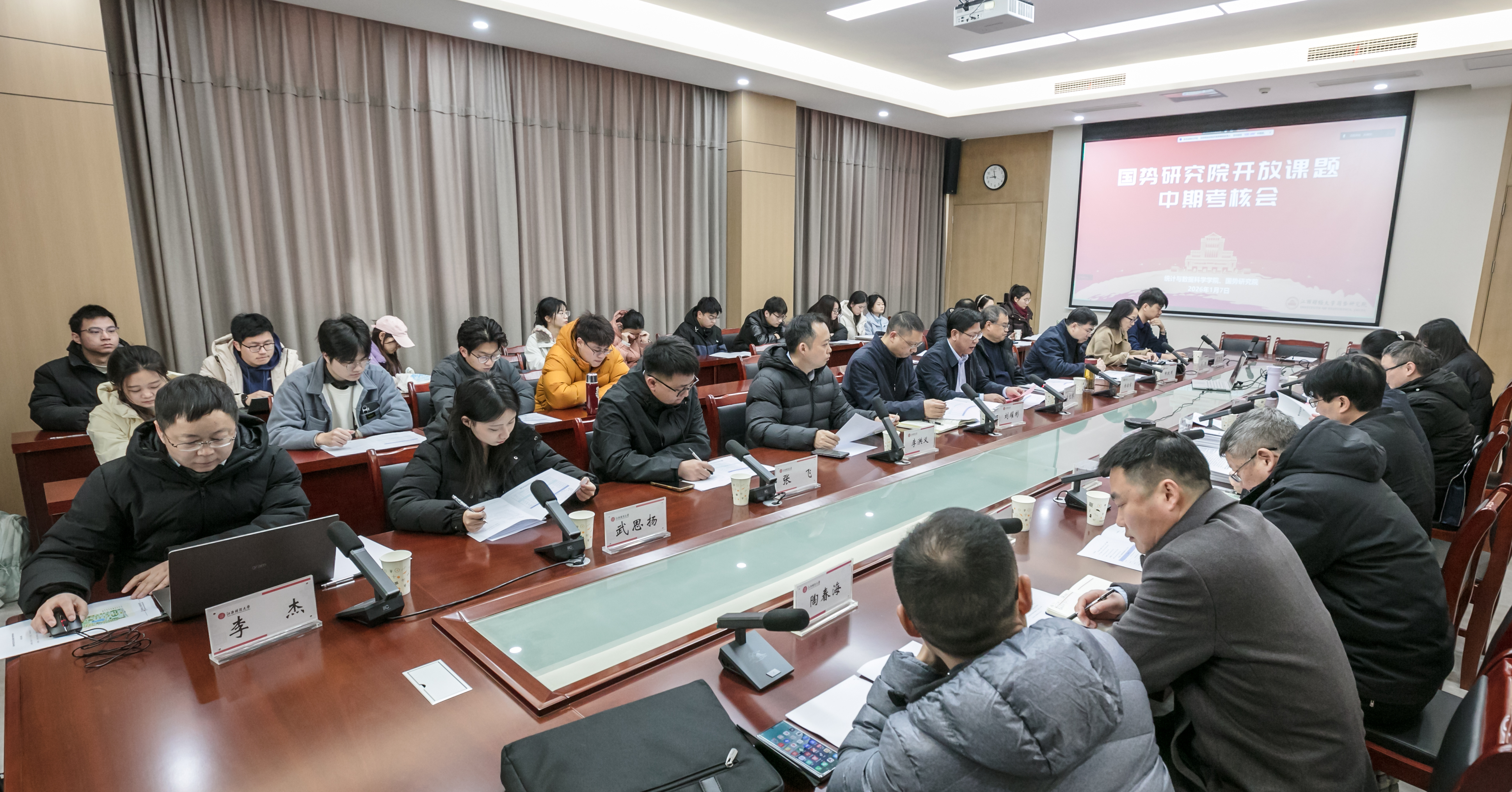 此次中期考核会完成了开放课题的阶段性评审,也为后续成果凝练与应用转化明确了方向。下一步,国势研究院将继续以国家战略需求为牵引,深化跨学科、跨机构协同,推动形成更多可应用、可转化、可支撑的国势研判成果,为国家决策贡献江财智慧与力量。