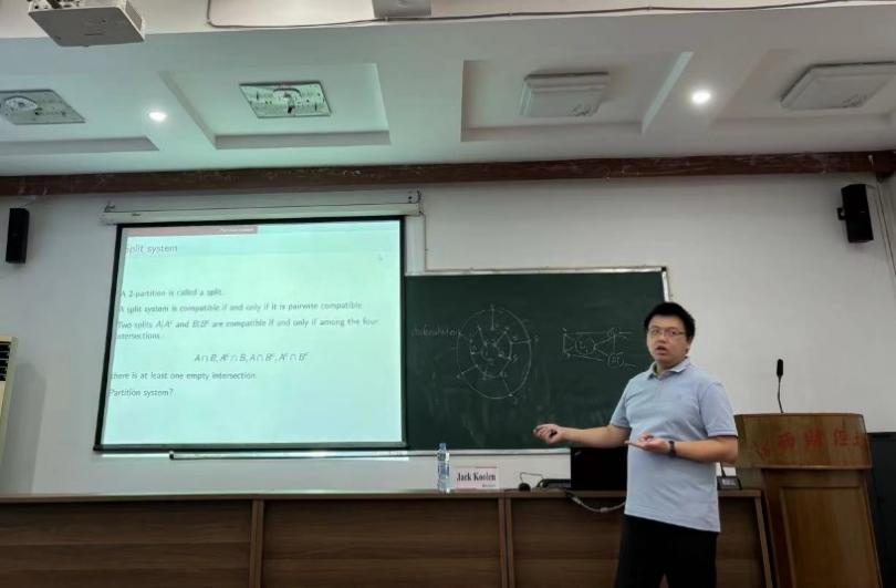 Additionally, Professor Jack Koolen's student shared his research on tree similarity for sparse grid point sets based on this concept. He began by introducing compatible partition systems and splitting systems in graphical form.